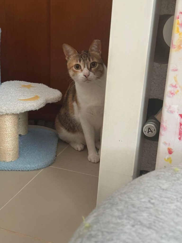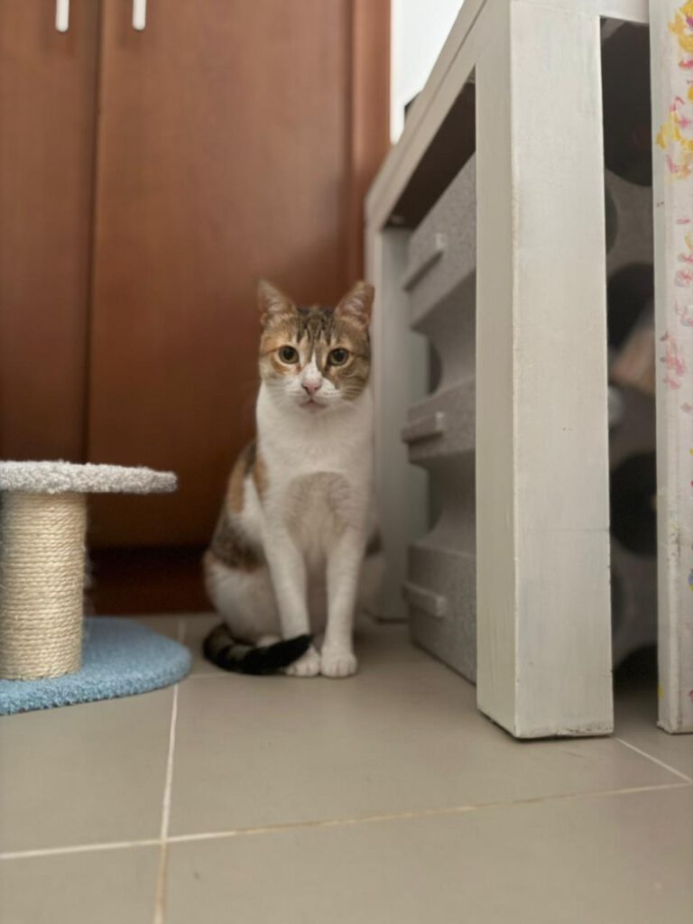 Linda ist eine etwa 7 Jahre alte Katze, die viele Jahre auf sich allein gestellt war. Sie lebte lange an einem Einkaufszentrum in einer Community in Dubai, wo sich freundliche Menschen um sie kümmerten. Doch eines Tages wurde sie durch ein Halsband schwer verletzt – die Wunde war tief, die Heilung lang. Sie musste monatelang medizinisch versorgt werden.